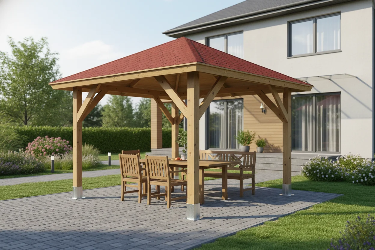 Holz pavillon Borneo ist ideal für die Freizeitgestaltung im Garten. Im Lieferumfang sind Befestigungsmittel und eine Aufbauanleitung enthalten, die den Aufbau erleichtern.