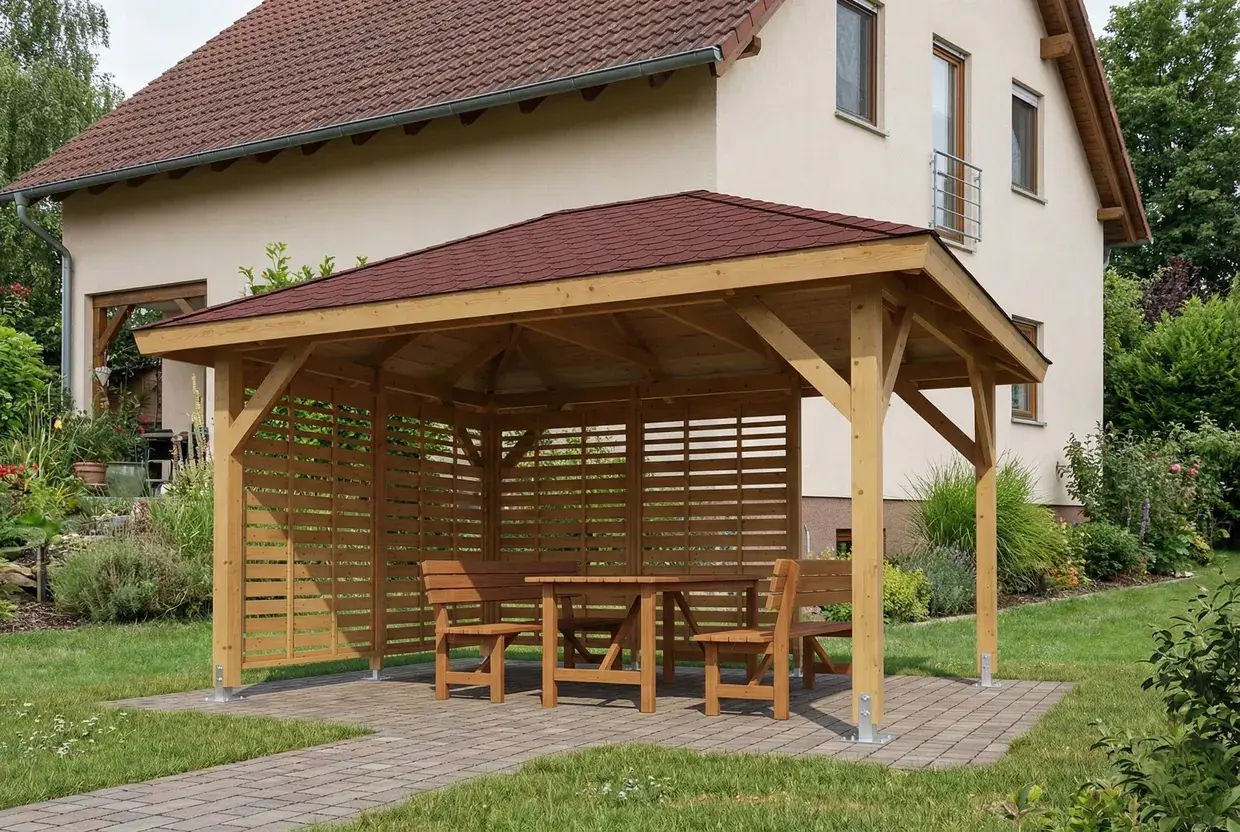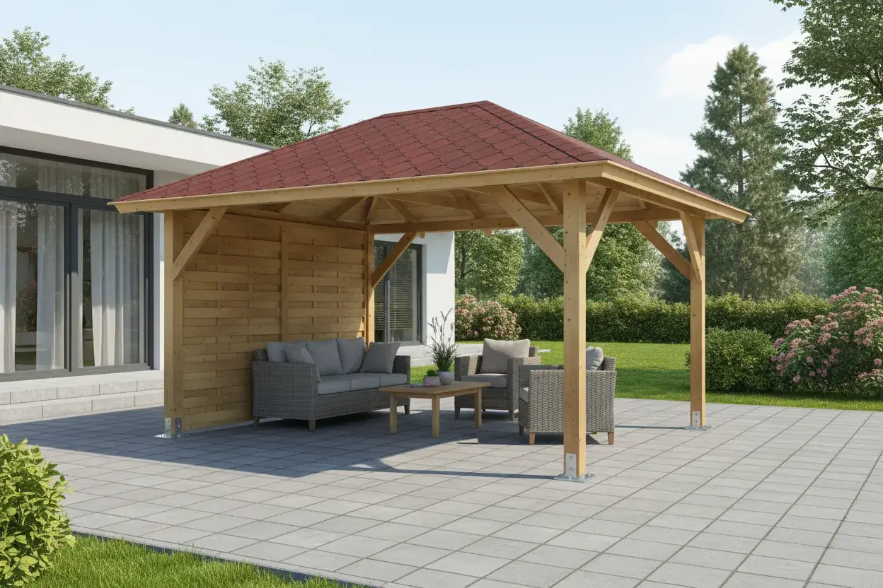 Holz pavillon Ibiza ist ideal für die Freizeitgestaltung im Garten. Im Lieferumfang sind Befestigungsmittel und eine Aufbauanleitung enthalten, die den Aufbau erleichtern.